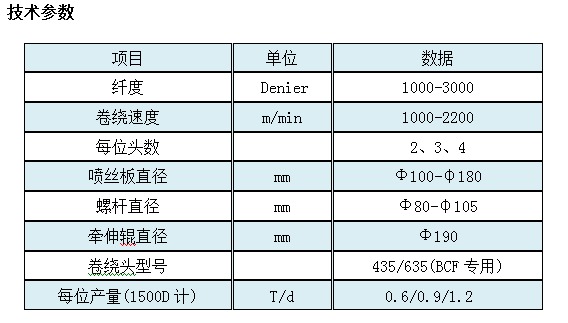 江西宏源丙綸BCF紡絲機技術參數(shù):